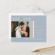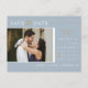 This save the date engagement announcement invitation postcard features elegant calligraphy and simple sans serif typography font with a photo and QR code on a dusty blue background with faux gold lines, gold heart ring, and black/white text for a clean minimalist and modern look, which is a beautiful way to tell your guests to inform about your upcoming wedding. Announce to your family and friends you are getting married with this invitation and add a personal touch with beautiful pictures of you and your soon-to-be better half. The simplicity of this design adds a touch of elegance to your wedding save the date invitation cards. It works well with many wedding themes and definitely a great addition to your wedding. Just customize the names and wording in a few easy steps and personalize the invitation postcard with your photo of the happy couple and replace the QR Code with yours.