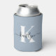 This simple, elegant dusty blue can cooler with your first name in a trendy script font in black and your first initial in a modern cap font in white is perfect for you. It's stylish and trendy and yet very classic. Get a bunch for when you're entertaining. Guests will be able to keep their drinks nice and cold.