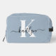 Elegant Dusty Blue Script Monogram Dopp Kit