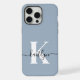 Elegant Dusty Blue Script Monogram iPhone Case