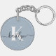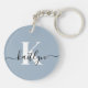 This modern dusty blue keychain with your first name in a trendy script font in black and your first initial in a modern cap font in white is perfect for your keys. It's stylish and trendy and yet very classic.
