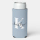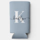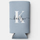 Elegant Dusty Blue Script Monogram Seltzer Can Cooler