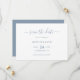 Announce your dusty blue wedding party with these minimalist, yet elegant save the date cards. Easily personalize online. Matching items available to complement this dusty blue wedding save the date card with a modern script.