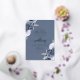 This elegant wedding invitation features dusty blue floral bouquets set off with silver faux foil greenery in two corners, on a dusty blue background. The customizable text combines real silver foil serif, italic and handwriting fonts. The reverse side features a matching dusty blue and silver floral design.