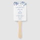 This stylish hand fan features a timeless blue toile botanical pattern paired with a clean, elegant layout for displaying your wedding program, order of events, or wedding party information. Designed for both beauty and practicality, it is perfect for outdoor weddings, summer ceremonies, garden venues, beach celebrations, and warm-weather receptions.