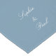 Elegant Dusty Blue Wedding Table Runner, please personalize the names of the couple, using the online personalization template before ordering. The names of the couple automatically appear on both ends of the runner, with the lettering the correct way up when the printed drop hangs down over the edge of the table at each end.