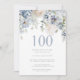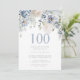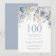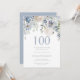 Elegant Dusty Blue & White Floral 100th Birthday Invitation
