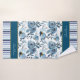 Elegant blue botanical stripes are the perfect adornment for a master or guest bathroom. Beautiful blue watercolor roses and foliage arrangements are combined with a pattern of many blue coloured stripes in this design. The set includes one bath towel, one hand towel, and one washcloth. This lovely set, which can be personalized with a name, is ideal for a Mother's Day, birthday, or housewarming gift!