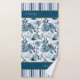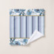 Elegant Dusty Blue White Floral Stripe Monogram Bath Towel Set