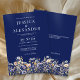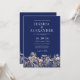 Elegant Dusty Blue Wildflowers Navy Wedding Invitation