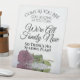 This beautiful self-standing pedestal sign will let your guests know that there is no seating plan so they can sit wherever they like. It features a simple yet elegant design with a single long-stemmed dusty rose or mauve pink coloured rose reflecting in a pool of water. Text reads: Come as you are, stay as long as you can, We're family now, so there's no seating plan. Perfect way to invite your guests to mingle and meet each other.