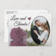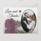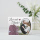This beautiful postcard is a simple yet thoughtful way to thank your wedding guests. It features a lovely design with your wedding photo in an oval shaped frame, and a single long stemmed dusty mauve pink coloured rose reflecting in a pool of water. The caption reads "Love and Thanks" and there is space for your custom note on the back as well as your signature.