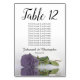 Elegant Dusty Purple Rose Seating Chart Wedding Table Number