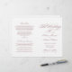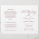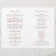 Romantic dusty rose calligraphy spells out "The Wedding Of" in sweeping ornate script across this elegant ceremony program on a clean white background. Delicate scroll flourishes in matching dusty rose complete the soft, feminine design. Inside pages are fully customizable for your bridal party, ceremony order, and a personal thank you message on the back cover. Programs are printed on text-weight paper and arrive flat, requiring a simple centre fold.
