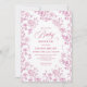 Celebrate your upcoming arrival with this elegant baby shower invitation featuring classic French toile de Jouy roses. Soft dusty pink, blush, and pink and white floral patterns create a timeless, romantic look accented by refined rose gold tones. Professionally printed by Zazzle, this design offers crisp details, beautiful color balance, and a smooth, high-quality finish that highlights the intricate rose pattern. Perfect for a classic, floral, or vintage-inspired baby shower, this invitation is fully customizable and arrives polished and photo-ready. A charming choice for welcoming baby with graceful, traditional floral style.