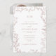 The invitation features an intricate leafy line art motif framing your special invitation details, where you feature the couples' initials in a beautifully crafted monogram. A hand lettered calligraphy font adds an elegant touch that will bring the whole look together, while a favourite engagement photo adds a one-of-a-kind personal touch, in a timeless colour combo of Dusty Rose and bright white.