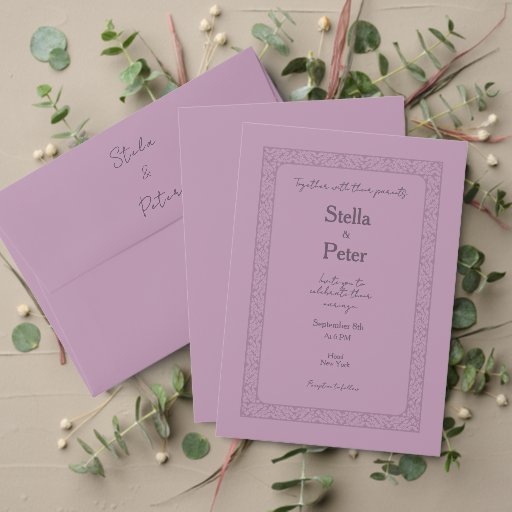 Express your heartfelt gratitude with this elegant and minimalist wedding thank you card. Following the romantic aesthetic of our "Dusty Rose" collection, this card features a sophisticated mauve purple background framed by a delicate, vintage-inspired tonal border.