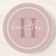 Elegant Dusty Rose Round Monogram Script Coaster