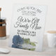 This beautiful self-standing pedestal sign will let your guests know that there is no seating plan so they can sit wherever they like. It features a simple yet elegant design with a single long-stemmed dusty steel blue coloured rose reflecting in a pool of water. Text reads: Come as you are, stay as long as you can, We're family now, so there's no seating plan. Perfect way to invite your guests to mingle and meet each other.