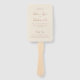 Elegant wedding program hand fans featuring a simple design with script and serif fonts.