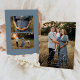Elegant Easter card featuring your favourite photo on the front with "Easter Blessings" in a beautiful white calligraphy script. Personalize the front of the Easter photo card with your name. The card reverses to display 2 additional photos with a slate blue background or colour of your choice.