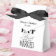 Elegant Black and White Eat Drink and be Married Wedding favour boxes. Add your name and special date.. Dark Grey Quatrefoil.
