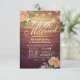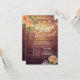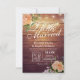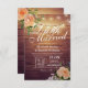 EAT Drink and Be Married Wedding Celebration / Bridal Shower Invitation Cards Templates.- Elegant Script with Peach White Roses Floral and String Lights on Rustic Wood Background.