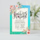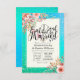 EAT Drink and Be Married Wedding Celebration / Bridal Shower Invitation Cards Templates - Elegant Lettering Script and Vintage Watercolor Pink Flowers on Turquoise Teal Blue Green and Faux Gold Foil Confetti Polka Dots Background.