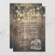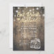 EAT Drink and Be Married Wedding Celebration / Bridal Shower Invitation Cards Templates.- Elegant Mason Jar and String Lights on Rustic Wood Background.