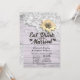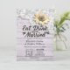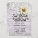 EAT Drink and Be Married Wedding Celebration / Bridal Shower Invitation Cards Templates - Vintage Lace, Sunflower and String Lights on Rustic Wood Background.