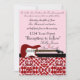 Perfect for a wedding, exchanging your vows in a present of friends. This red Fancy Fringe card will make any wedding the best ever to remember, with the red and pink invitation. Red fancy fringe pattern at the bottom and a cute red electric guitar and a black ribbon with the bride and grooms name above the guitar neck.