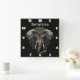 An elephant stands majestically, its head embellished with stunning decorative motifs. The blending of colours accentuates its features, creating a captivating and artistic representation.