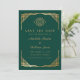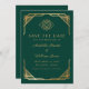 For the couple who are planning a wedding. This elegant, classy and sophisticated emerald green wedding save the date can be personalized to include your wedding details. Include our names and the all important date and location so that your guests can add your special day to their diary. The design features and elegant calligraphy script and has an art deco style.