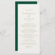 Ce menu de mariage élégant présente un design moderne chic. L'avant est une crème avec une typographie or moderne, tandis que l'envers est un vert émeraude foncé avec vos initiales dans une typographie or. Personnalisez avec vos noms, date mariage et votre menu.