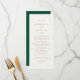 This elegant wedding menu features a chic modern design. The front is a cream with a modern gold typography, while the reverse side is a dark emerald green with your initials in a gold typography. Personalize with your names, wedding date and your menu.