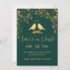 Elegant Emerald Green & Gold Floral Birds Save The Date