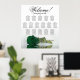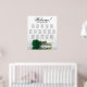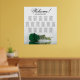 This modern floral wedding seating chart boasts 16 tables with a romantic design featuring a stunning deep emerald green coloured rose lying on its side, reflecting in a water pool. The title, "Welcome! Please Find Your Table," is elegantly written in script calligraphy lettering, and there is ample space at the bottom for the couple's names and wedding date. The chart accommodates 160 guests, with 10 seats assigned to each table, adding elegance, class, and style to your wedding reception while enabling guests to find their seats conveniently.