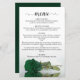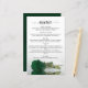 Ces beaux menus mariages sont simples, élégants et élégants tout en étant abordables et abordables. Elles présentent un design élégant et séduisant avec un titre de calligraphie script et un rose unique couleur vert émeraude se reflétant dans un bassin d'eau avec vagues et ondulations. Le dos est une belle couleur violet marbrée avec les noms du couple et date mariage en bas.