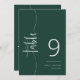 This elegant wedding table number features an elegant calligraphy and simple sans serif typography font for a clean minimalist and modern look in an emerald green background, which is a beautiful way to help your guests find their seat/table. The simplicity of this design adds a touch of elegance to your wedding. It works well with many wedding themes and definitely a great addition to your wedding stationery. Just customize the names. wedding/event date, and table number in a few easy steps and personalize it to give it a nice personal touch.