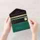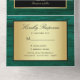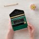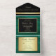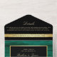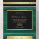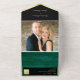 Elegant, modern, luxury, minimal emerald green, gold and black all-in-one wedding invitation with custom picture of the couple at the back.