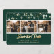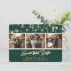 Elegant emerald green and gold wedding photo save the date cards with a modern script font. Easily personalize this emerald green photo save the date with your images and wedding details including a wedding website.
