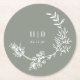 Elegant Envelope Sage Green Floral Monogram Wreath Round Paper Coaster