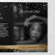 Célébrez l'occasion capitale des réalisations de votre diplômé grâce à cette invitation à trois fois élégante, amusante et luxueuse de graduation en or! À l'intérieur, vous pouvez inclure tous les détails de la fête, tels que l'heure, la date et l'emplacement. Le dos offre beaucoup d'espace pour votre propre message personnel sur votre grade, cette invitation fera de votre remise de diplômes une fête inoubliable !