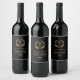 Design élégant, simple, monogrammé étiquette de vin. Badge de couronne de laurier or et noir avec un monogramme personnalisable. Arrière - plan changeable noir.