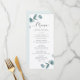 Simple Minimalist Eucalyptus Frame Script Wedding Dinner Reception 4 Course Meal Menu Cards. Perfect for your spring or summer garden or outdoor themed wedding theme. In a soft subtle muted colour palette of teal aqua greens, pastel mint, dusty blue greys, and simple classic white. The elegant script calligraphy font is a featured for the word Menu. This design is perfect for a farmhouse, country, or garden wedding. Simple Eucalyptus Menus are easy to customize with this template for your DIY and affordable wedding stationery.