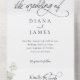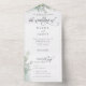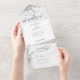 Elegant Eucalyptus Calligraphy Wedding All in One Invitation card to personalize with your own information. it features modern typography and elegant calligraphy with eucalyptus watercolor leaves.