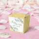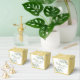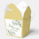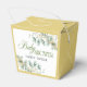 Lovely favour boxes designed as a "to go box" features green and gold eucalyptus leaves for a truly elegant touch. Update the one line of text as you see fit.