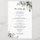 Conçu pour correspondre à notre collection Boho Greenery mariage, ce Modèle de menu personnalisable propose des feuilles de verdure à l'aquarelle mélangée avec un serif élégant en noir, avec un monogramme sur le dos. Éléments correspondants disponibles : https://bit.ly/3a3h3fv