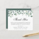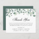 Un magnifique carte de remerciements funéraire abordable avec des illustrations d'aquarelle de la verdure d'eucalyptus, "Merci" dans un script élégant et votre message de remerciement customisé et le nom de l'être aimé dans la simple typographie.