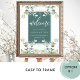 Welcome your guests with this exquisite wedding (or any other event) welcome sign with exquisite watercolor greenery Eucalyptus decorative borders and an elegant green frame with a welcoming message with elegant modern hand-written calligraphy details. Watercolor greenery in a beautiful blend of green, blue, beige, yellow tan, and orange hues. 8" x 10" is only our default size, the sign is available in a variety of size options. IMPORTANT NOTE: This sign is in premium poster paper style, easy to frame or glue/staple to inexpensive MDF or foam board for display. If you prefer this sign prepared for display already on a foam board, please follow these easy steps: on this sign product page, scroll up, until you see a section with images called "Transfer design to a product". Use the arrow on the images to look at all the options, until you reach the "Foam Boards" option. Click on it to transfer the design into a foam board for you. Initially, sometimes it transfers the design into a very big foam board size, nevertheless, you can change the sign into the size you need on the product page and even see how it looks already in a stand. Adding this design to your shopping cart will tell you the back side is blank. Don't worry about it, as this only means that the back of the sign will be white. If you need help, please send me a message and I'll get back to you as soon as possible". Design part of our "Elegant Greenery Eucalyptus Wedding and Events" collection with a variety of coordinating products available. The same design with the inner frame in mist blue and beige tan is also available.